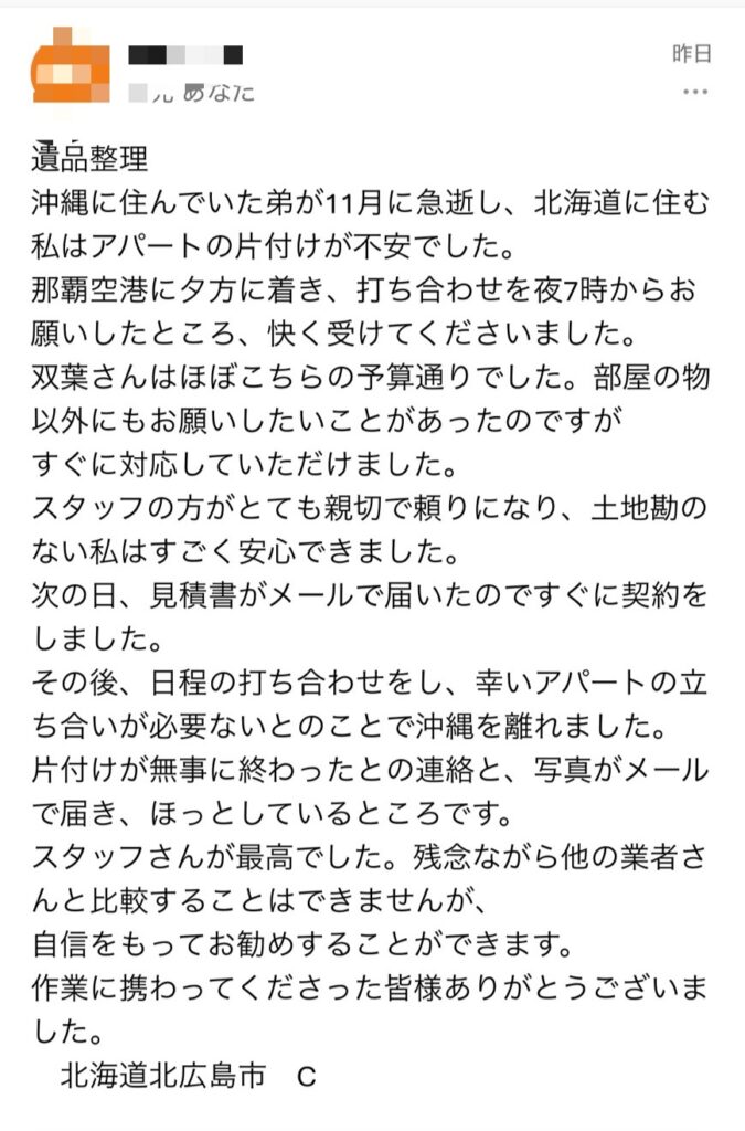 C様この度は弊社にお片付けのご依頼を頂きありがとうございました。